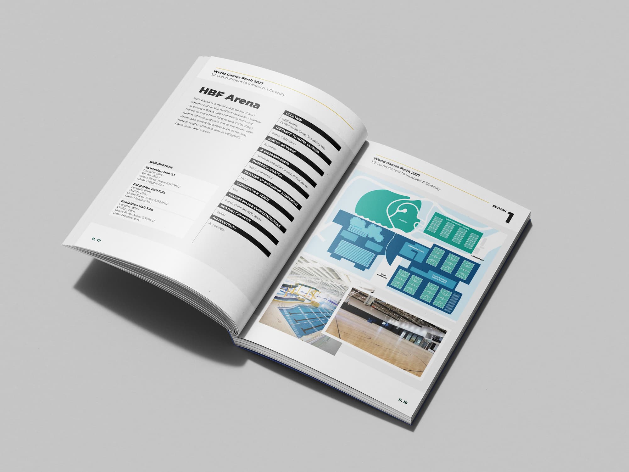 The scope of our creative work was substantial. We produced over 30 custom venue illustrations, detailed mapping, and purpose-built venue design visuals, each one carefully considered to communicate Perth’s world-class capability and ambition. We also commissioned a series of bespoke hand-painted watercolours of Perth locations to feature within the submission. Every piece of design was built to inspire confidence in the committee and paint a vivid picture of what the Games could look like on Australian soil.